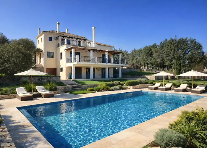 Questa villa con 5 camere da letto è a 4 km da Nymfes Waterfall.